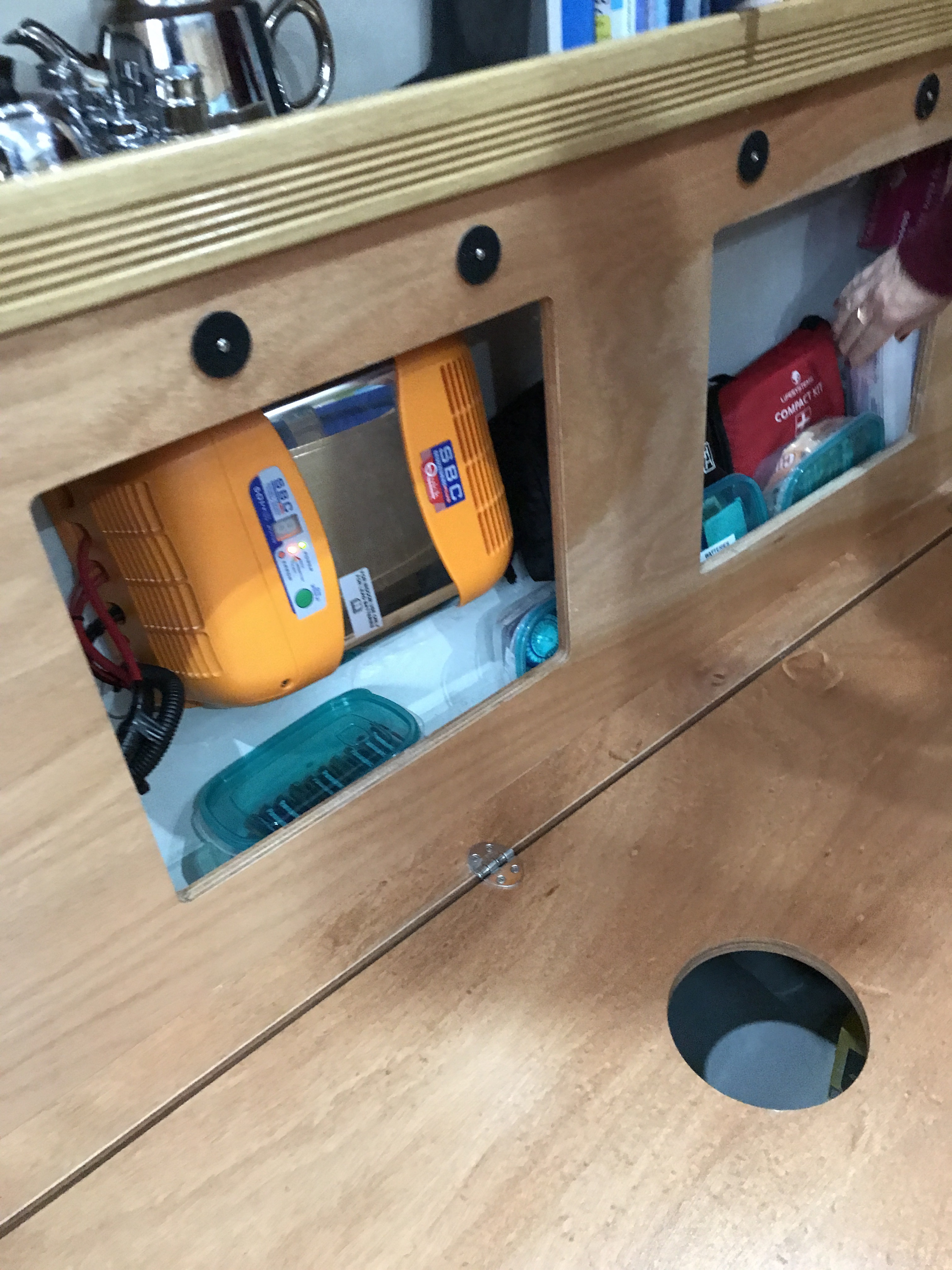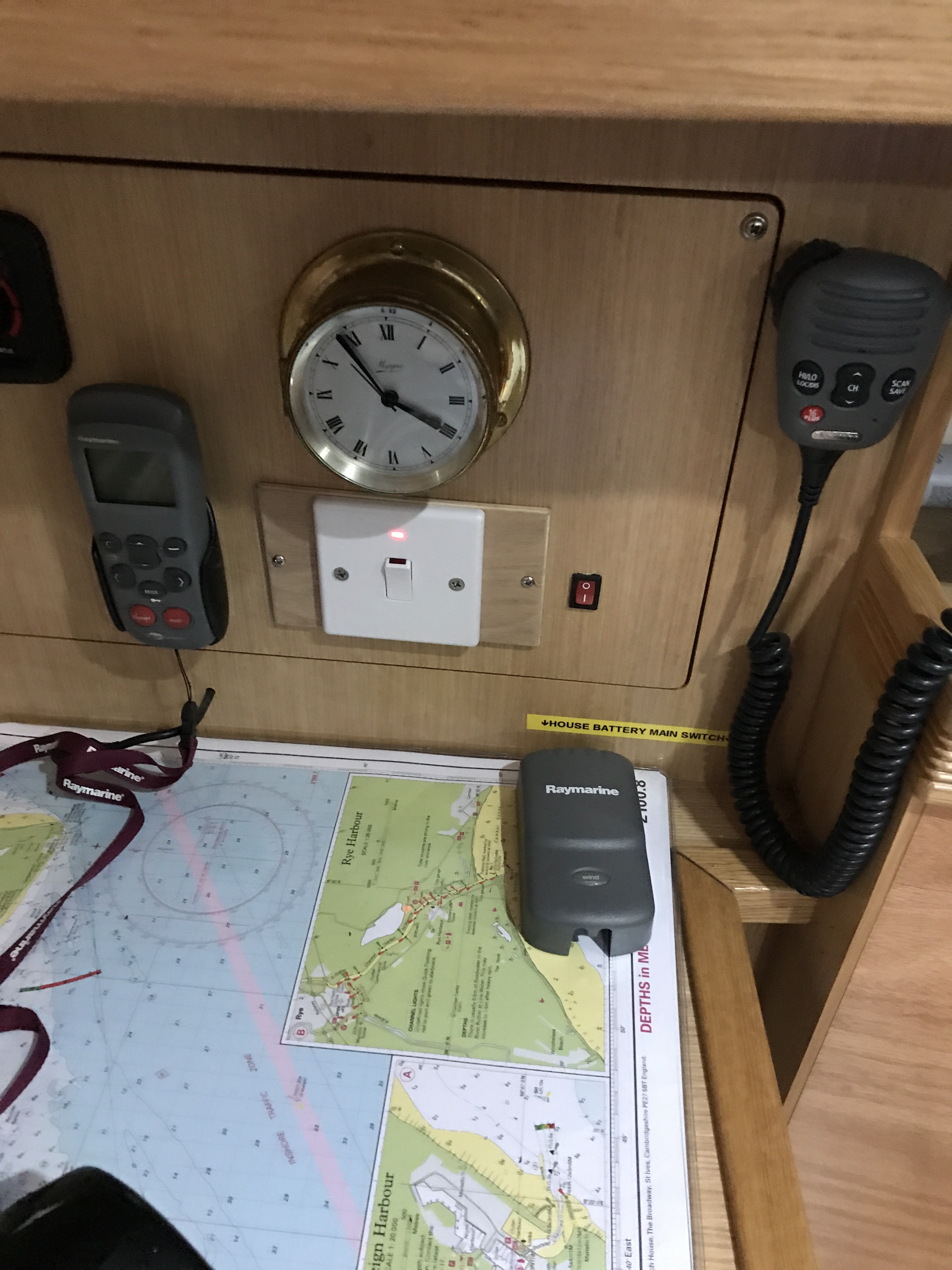 Two new Enduroline domestic batteries have been fitted, the cases are a bit bigger than the original Banners so the installation is not as elegant as the originals. We also have a new starting battery too! Good job there is plenty of space in the battery compartment! I was a bit unhappy with the security of the installation- I really would not want 80 kg of lead and sulphuric acid flying about the cabin in a Force 6 beat! I went a bit wild with the Gorilla Tape and wedge them in plastic boxes.