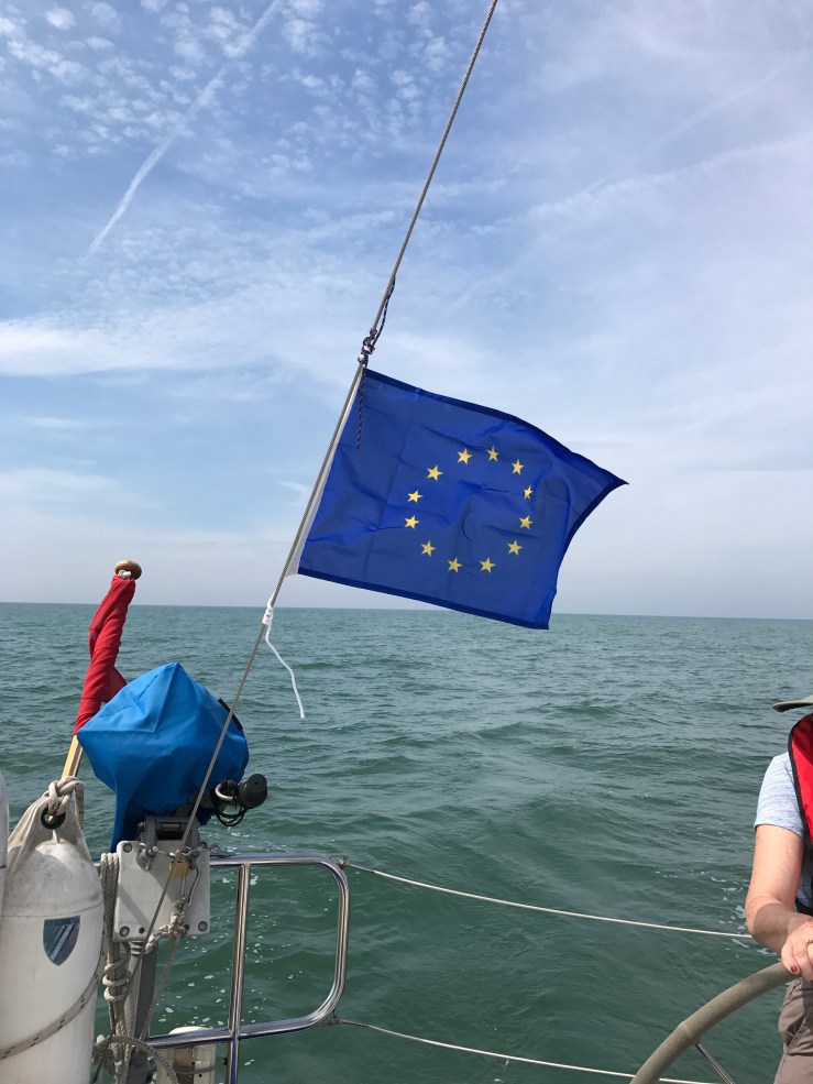 The red diesel problem! I can only buy red diesel for my boat in the UK and although I have paid the duty it is illegal to use it in the rest of Europe. Everywhere except Belgium recognises that if you have been to the UK you will have red derv in your tanks and ignores it! Needless to say my tanks are full of red derv, I had to fill up to cross the channel, it would have been irresponsible not to and anyway the traces of the red dye stay in your tanks for months! The man in the yacht next to us has just come through Belgium and regails us with tales of British boats being stopped at sea by customs and then being sent to Neiupoort or Oostende to be fined despite having the correct paperwork. We are sanguine about this! If they do stop and fine us then we will have to pay up, we have no option. We have to cross Belgium waters and our next destination, Berens in Holland is another 54 miles away from Dunkerque and is too long a hop for us to make in one go. And anyway we want to go to Bruges and I want to ride on the coastal tram! Anne has given me strict instructions that I must be civil if we are stopped as she will not rescue me from a Belgium prison, I must be polite to them but take their details and complain officially later! Perhaps, as we will be sailing on Friday and Sunday they will be less keen! However I am not yet quite prepared to take this lying down and I have applied a bit of mild guile, I have bought a Europe flag to fly as my ensign to replace the very easy to spot Red Ensign. That might confuse things for a while!!