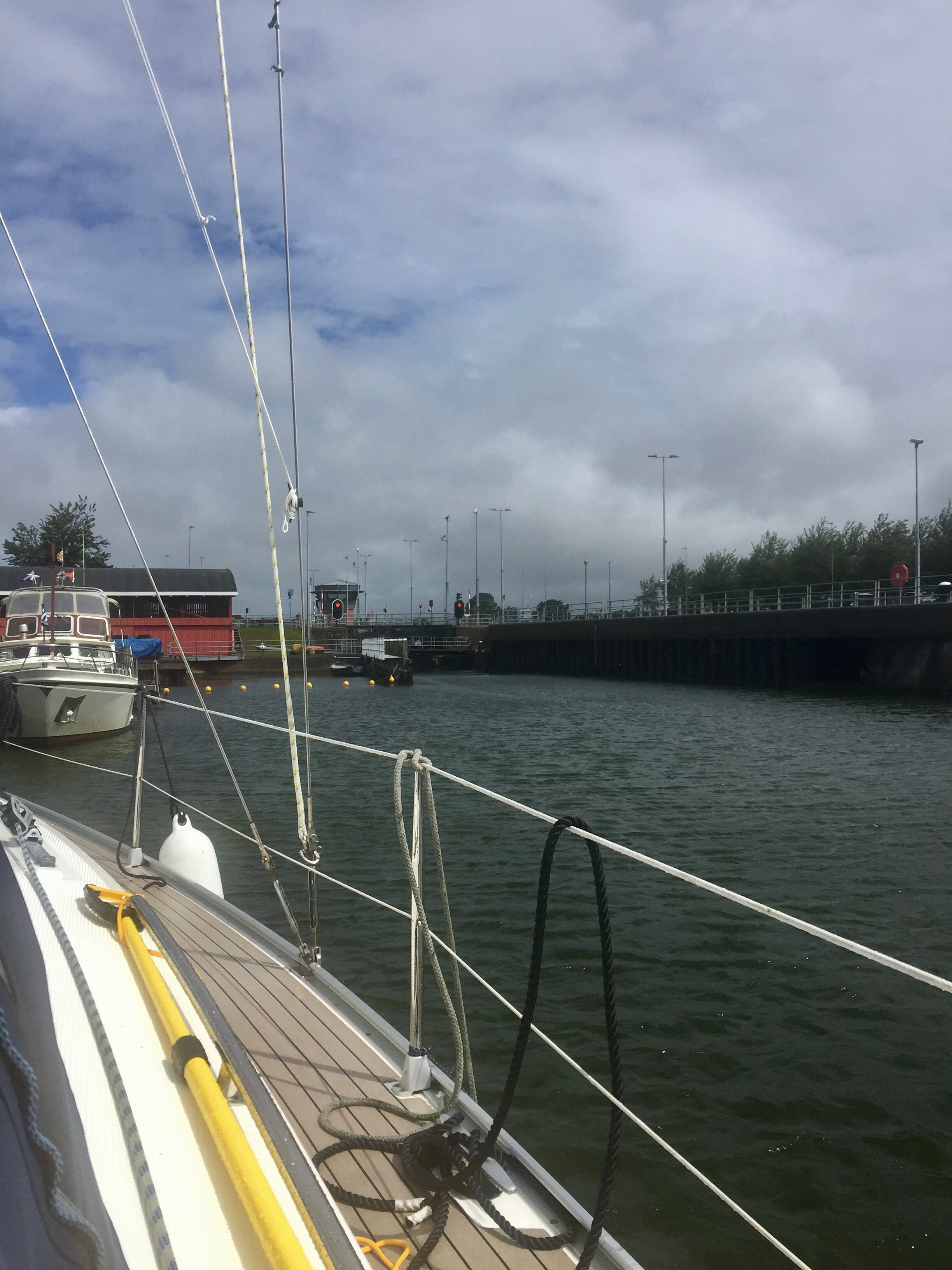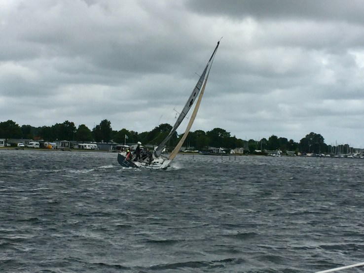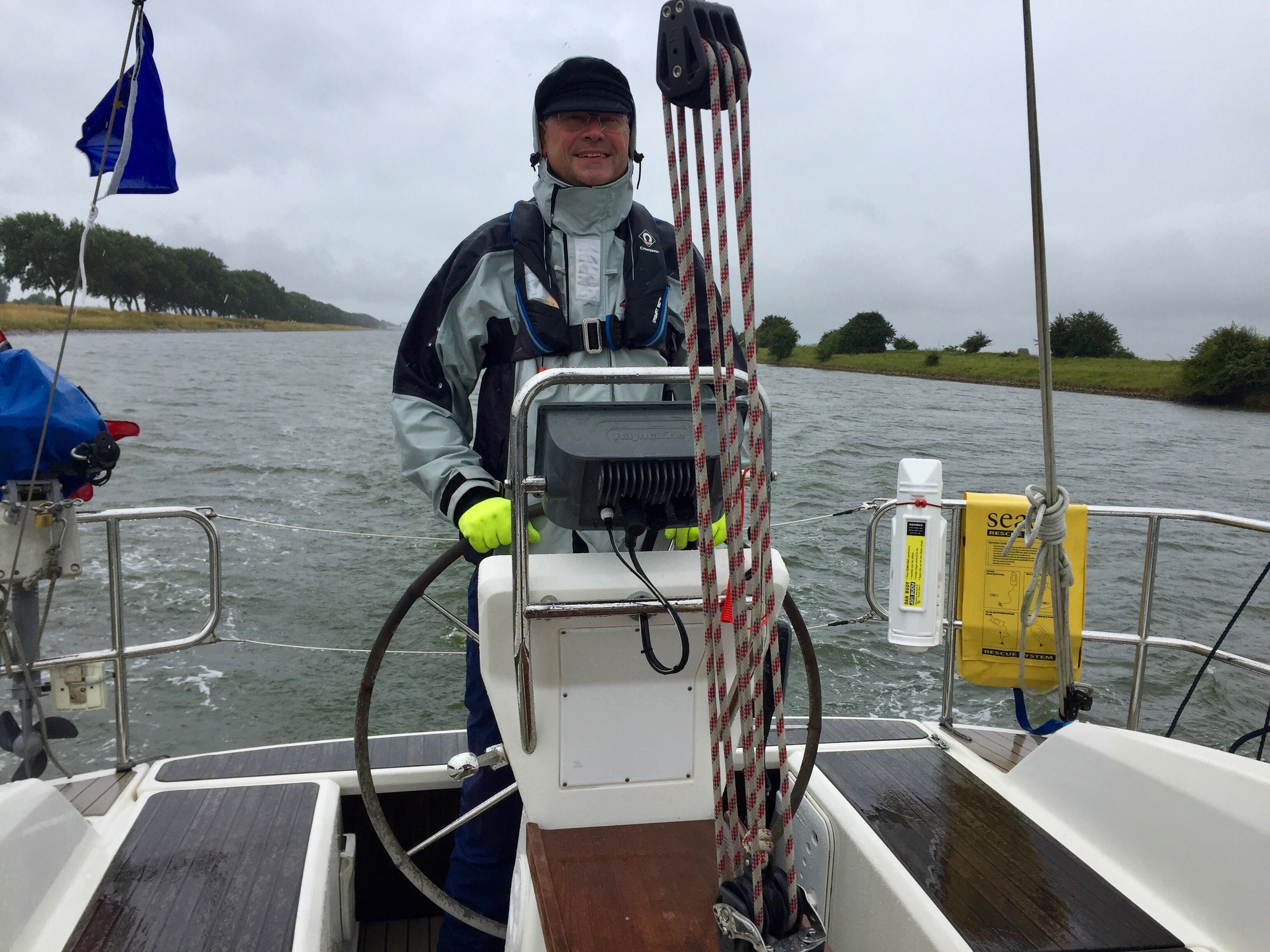 Wednesday morning, 1015. We have got Grace ready to depart in record time, less than 15 minutes earlier we were still having breakfast, now we are all togged up in our oilies, life jackets on and we are motoring through the open bridge and out towards the canal. It is here that the real strength of the wind hits us! But it can’t be too bad, we are on a canal after all and there are no waves, but the cross wind is strong and it can be quite difficult to keep Grace on track. There is 20 knots of wind, sometimes gusting 30 plus. We are not going back and what could possibly go wrong?