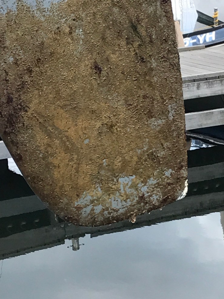 We have been through 3 locks (admittedly the same one three times!) and tied up 7 times. It is 1530 and weather is improving, the Marina staff are really helpful and they happen to have a Volvo Penta agency on site with a boat lift! They say no problem, pop back at 0830 and they will arrange to get her lifted. They smile and nod heads sagely and say that I might have lost a propeller blade. I have a folding prop and I am convinced that once in Chichester it failed to open allowing me to bump the lock gates there…….ummm a pattern is emerging! Anyway I carry a spare propeller, so for once I am quite chilled.
