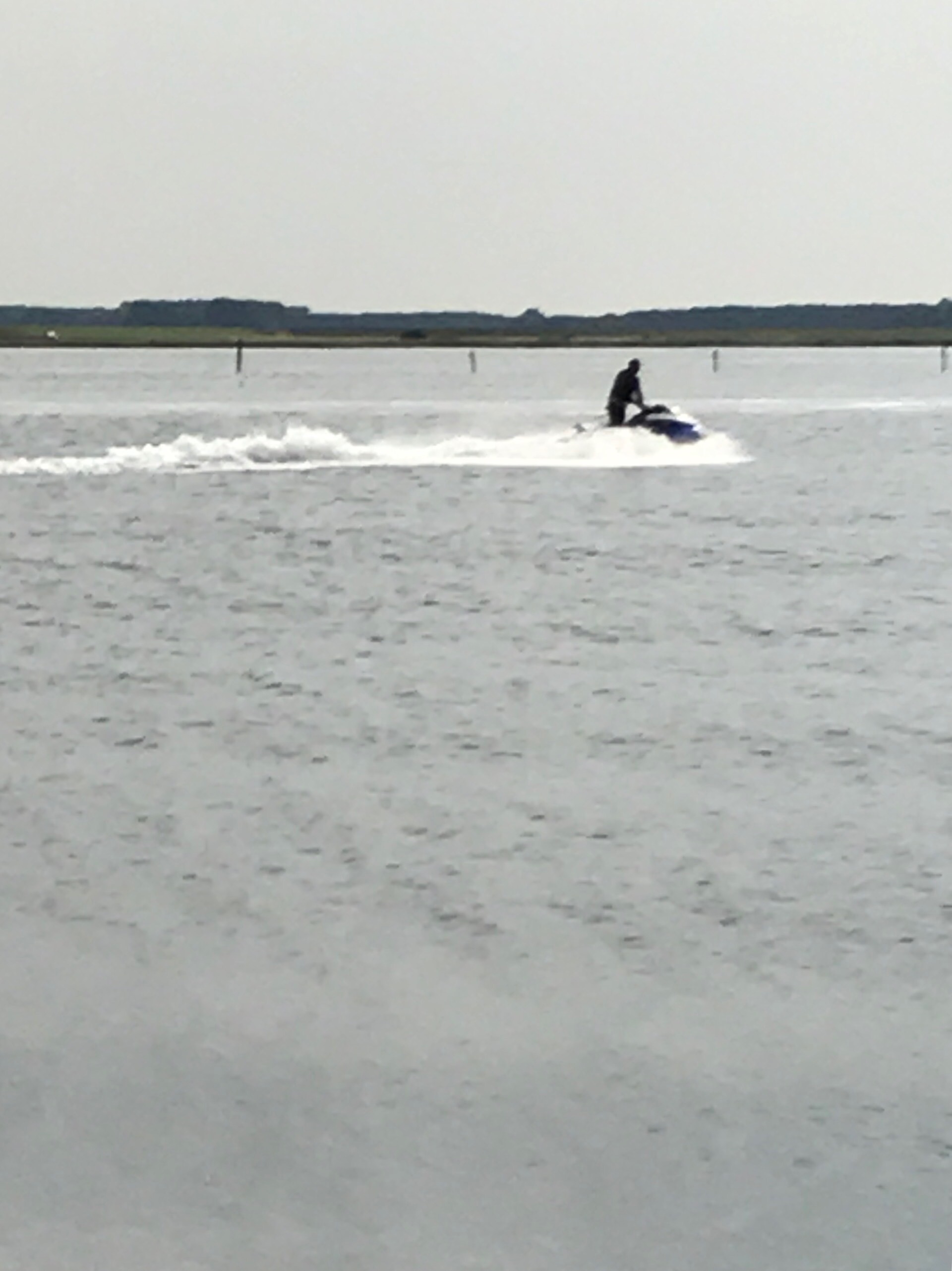 We are only disturbed but a couple of policemen on jet skis who zoom past a wave cheerily!