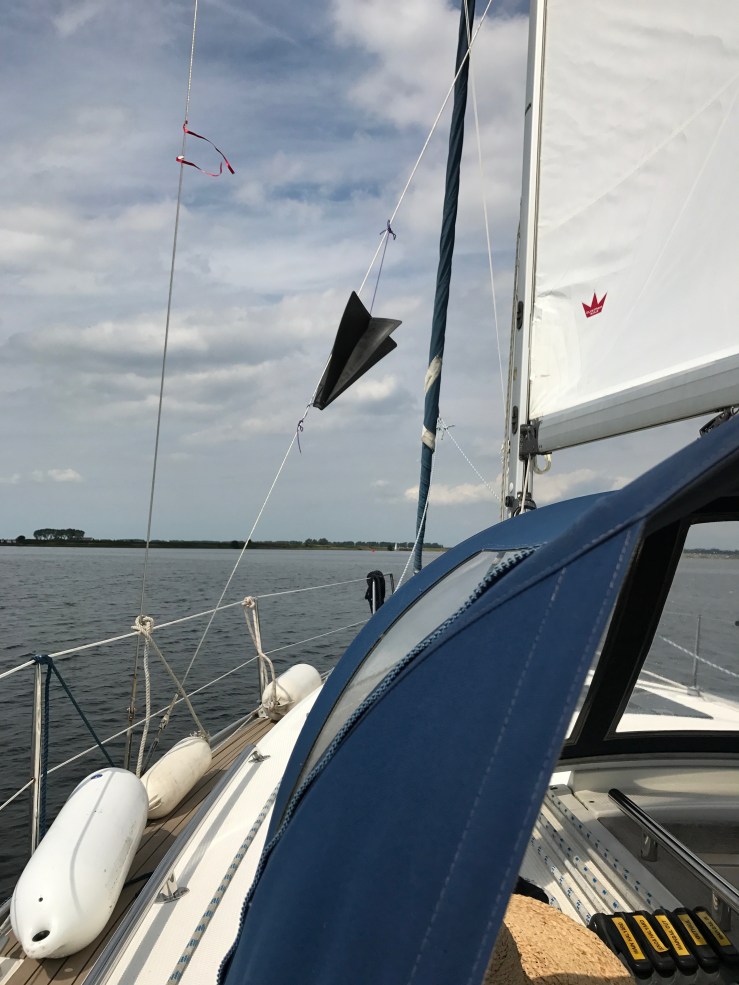 On our test sail, the inverted black triangle shows we are motor sailing. Not many people use them in the UK but the jet ski police are quite keen here!