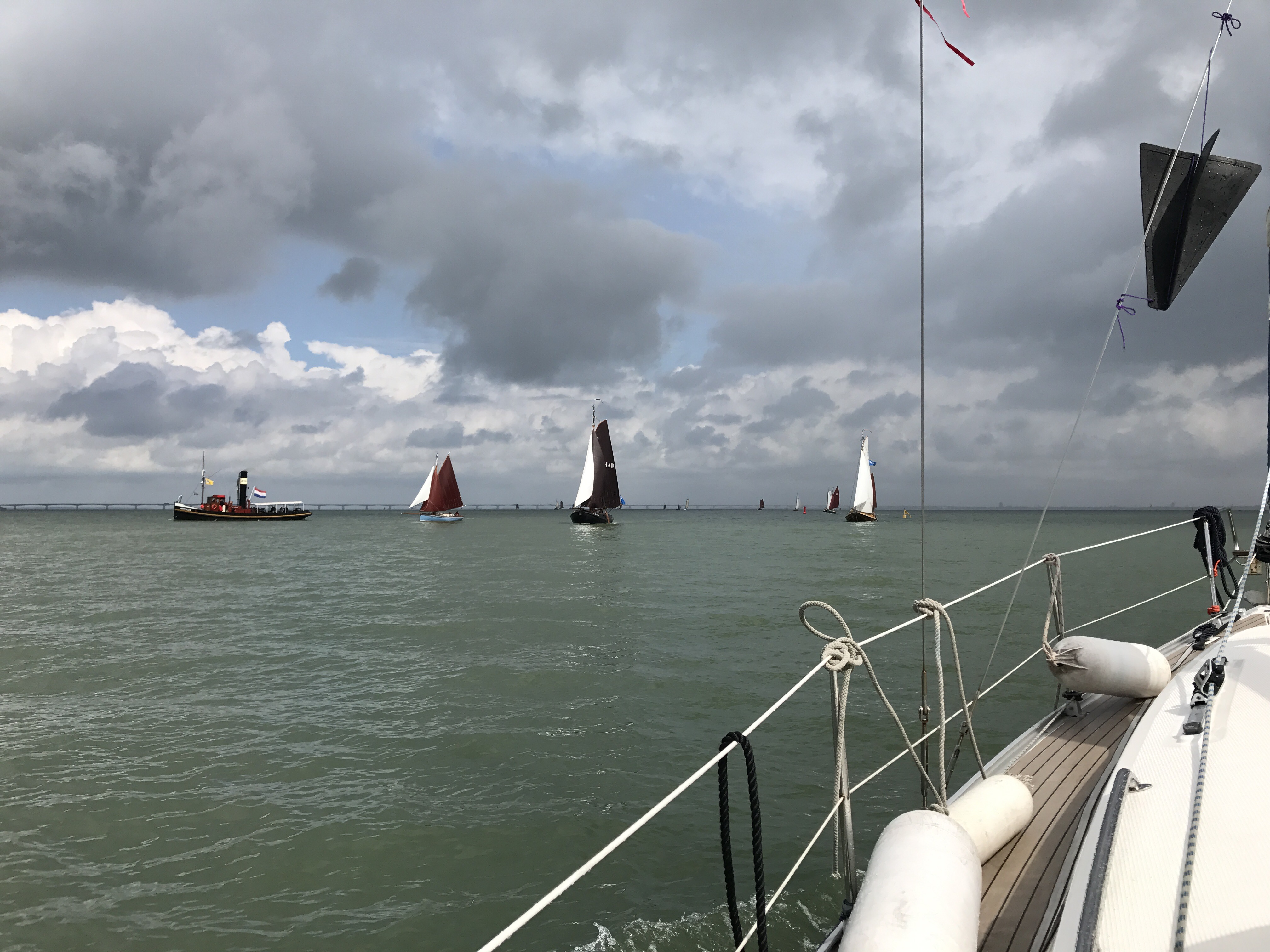 As we motor out towards the Zandkreeksluis the wind starts to build, first 15 knots, then 20 and gusting 25 knots with buckets loads of rain!