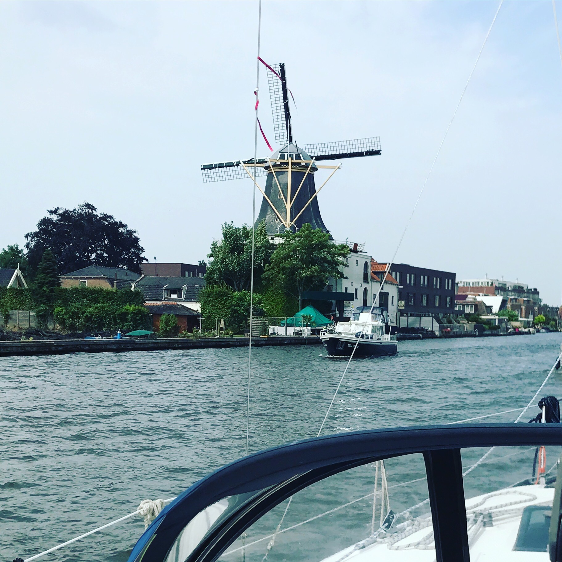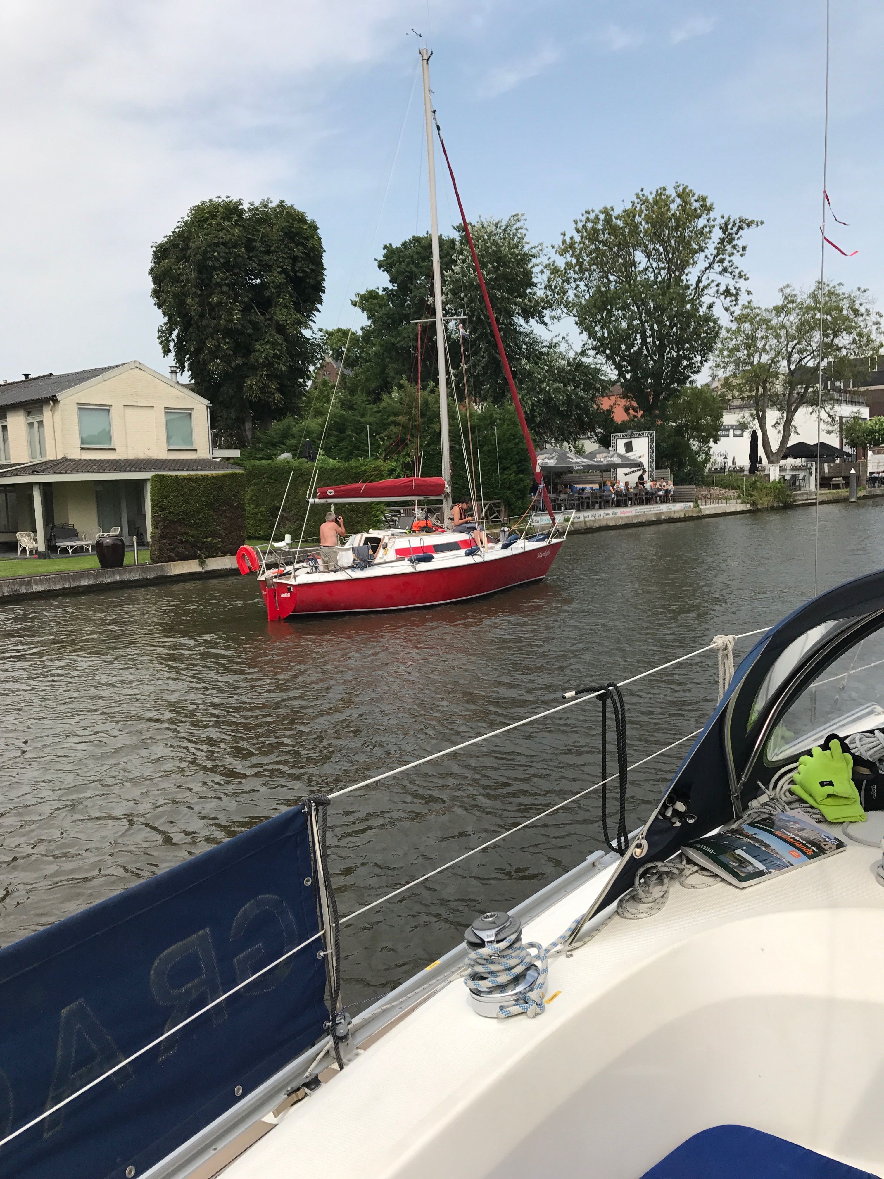 Once on the Old Rhine, we reached Alphen a/d Rijn and the bridge shuffle started again as we Have to wait for the bridges to open for us:
