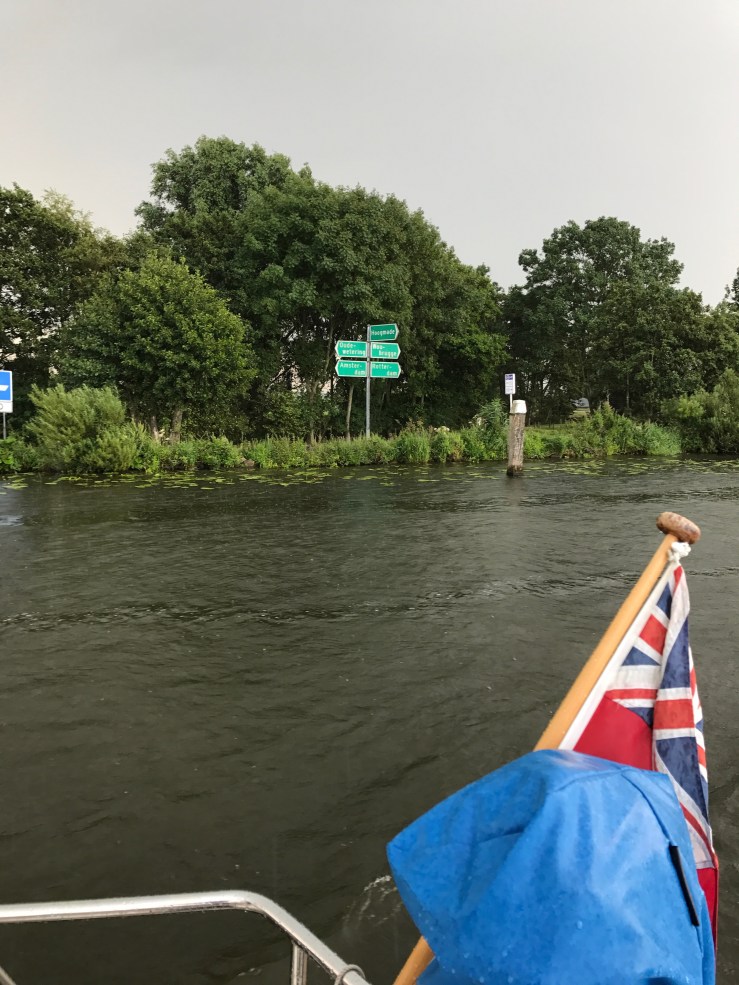 It is 1015 and we made a smooth exit out of our berth at Gouda Marina. There was only one boat length of space in the fairway. I swing Gracie out without the benefit of bow thrusters. Ace! I really am getting overconfident……As they say ‘pride comes before a fall’.