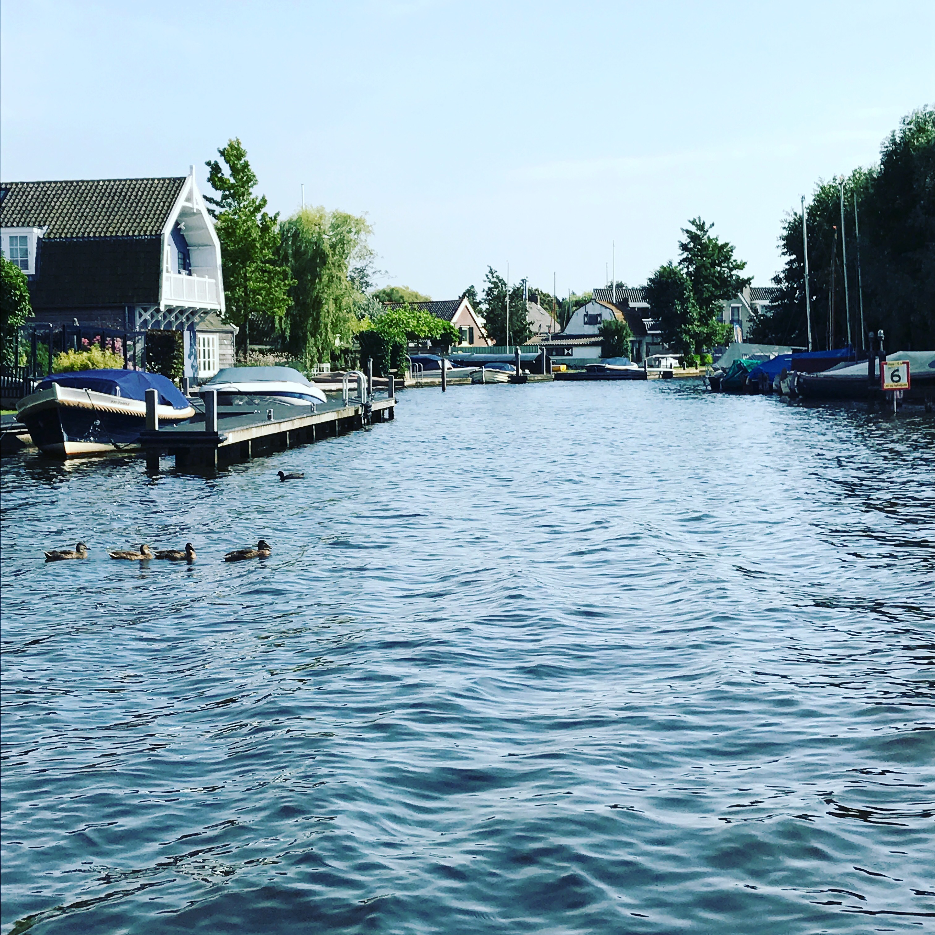 We now break out into the Braasermeer which is a pretty, wide but shallow lake. We have to follow the marked channel, it is no more than 1.5 to 2.0 m deep. Then out to Oud Wettering and the junction with the Ringwaart van de Haarlemer Meerpoulder.