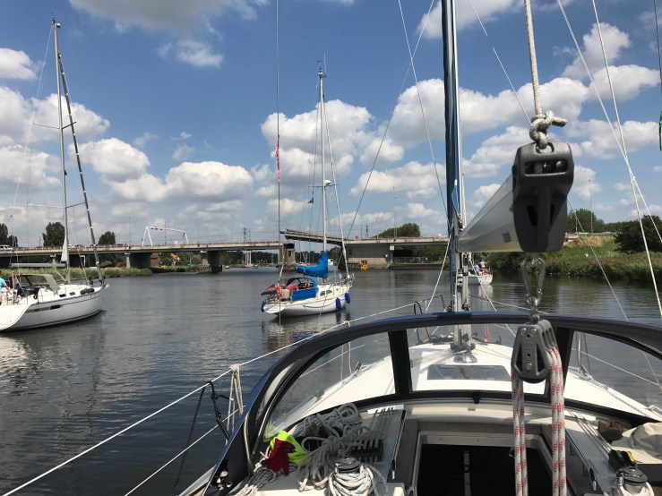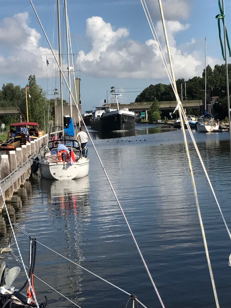 It was 1345 and we had 30 minutes to make the bridge at the A6 motorway at Spaarndam. If we miss it then the next time it will open is at 1945. We still had a lock and 2 bridges to do!