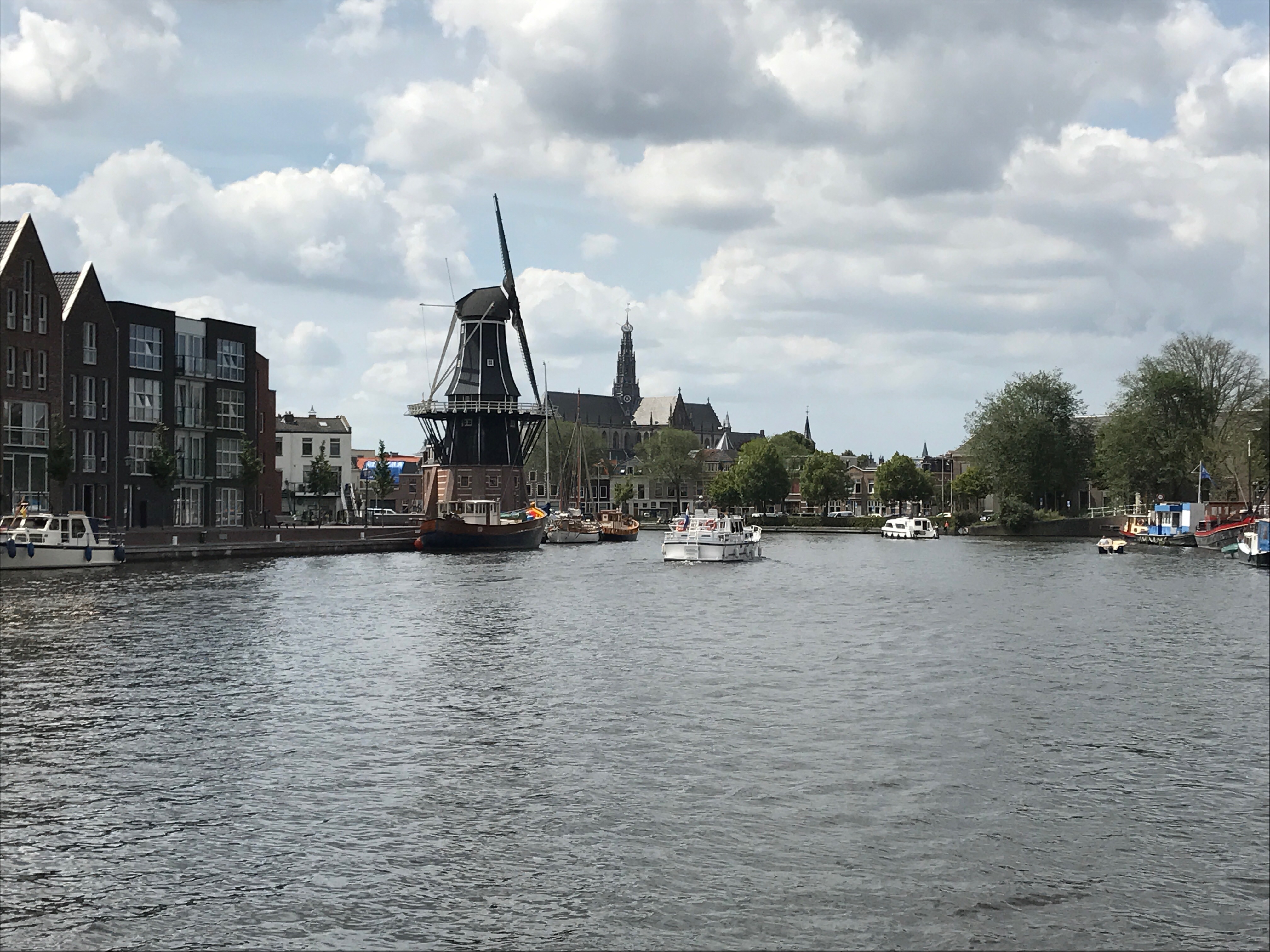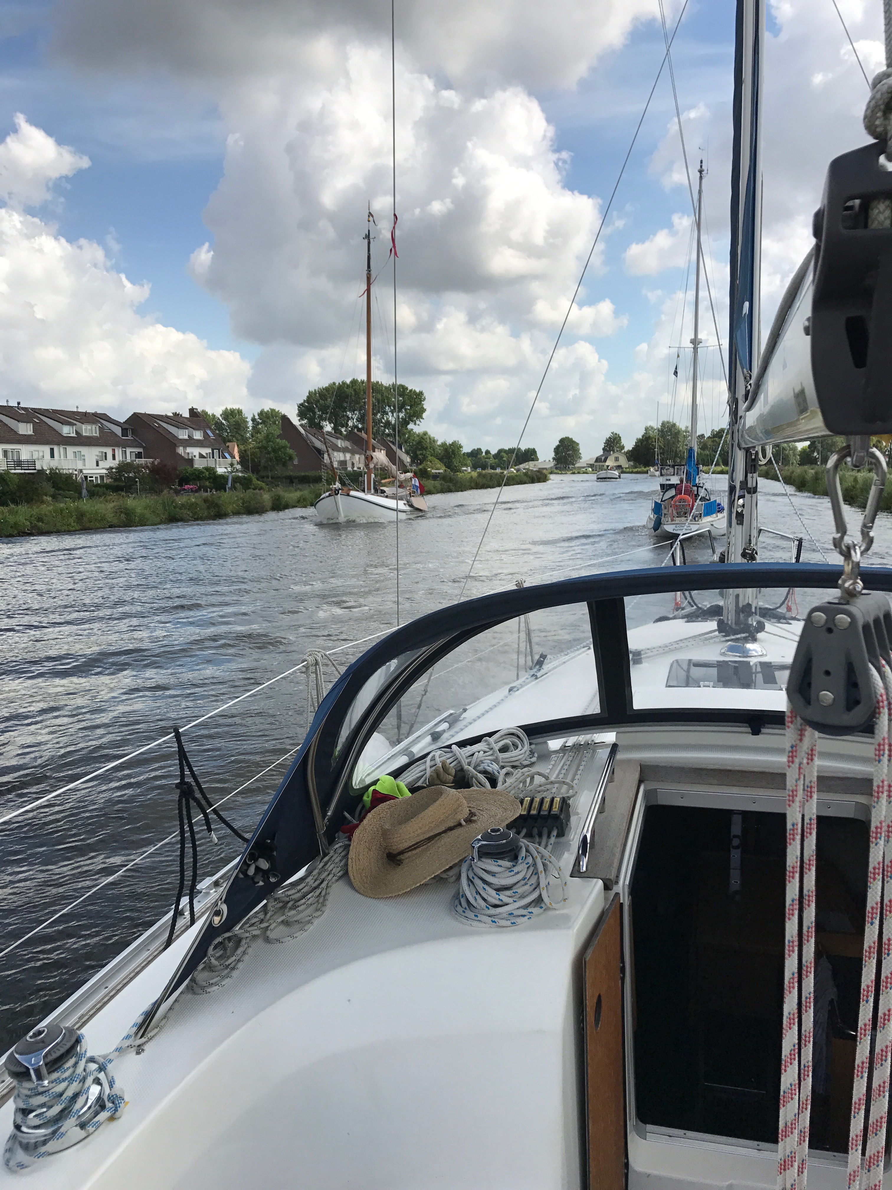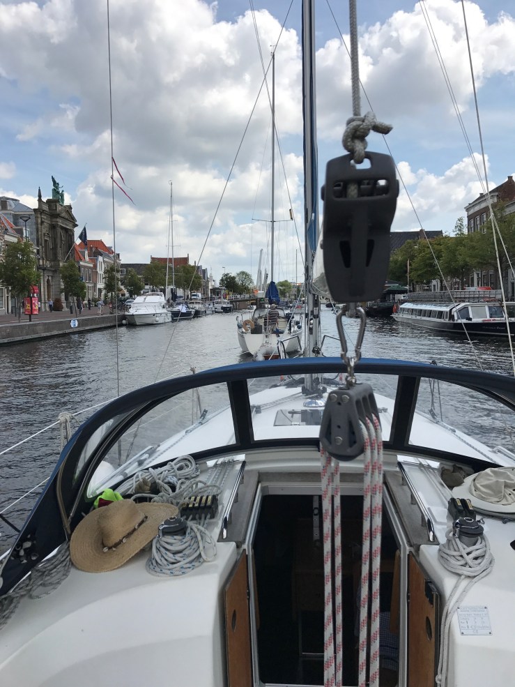 We then went north up the Spaarne and the bridge at Schouwbroeker. We then entered the zone around Haarlem. This has 9 bridges which you have to pass through in convoy, but if you get the timing just right they open in sequence for you. We had a perfect run and had stopped at bridge 3 to pay our 10 Euro toll.