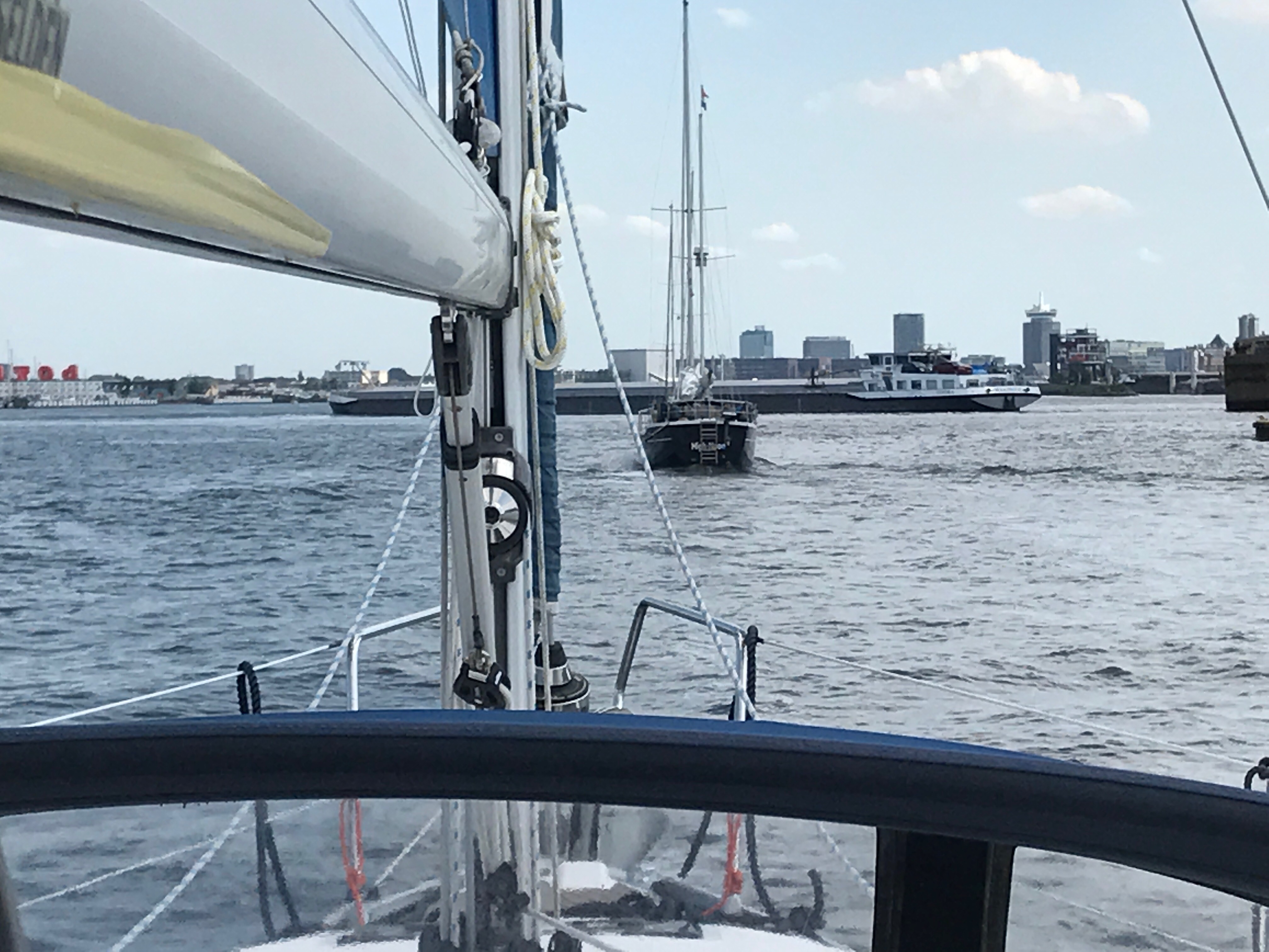 It is just 4 miles to Amsterdam before we cross the canal and enter the Amsterdam Marina. They tell us to secure up to the wavebreaker. It is 1550, we have cover 19 miles and are safely in Amsterdam, just short ferry ride from Amsterdam Centraal Station.