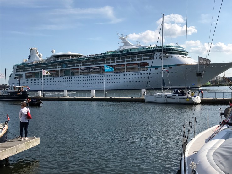 When we set off from Kaag on Friday morning we did not expect to be in Amsterdam that night! As we had run on the motor for 32 hours and at 3.5 litres per hour, I estimated that we have used 112 litres of fuel so needed to refuel. There was nothing before Amsterdam so we had no option but to fill up at the chandler’s fuel pontoon. We only managed to take 40 litres of diesel. It was a good job as it was the most expensive fuel I have ever bought! Nothing backward here!