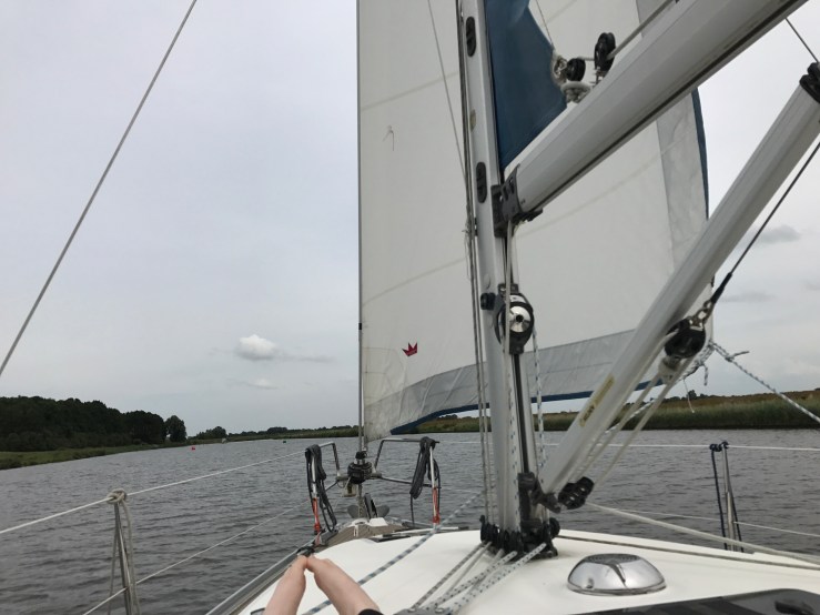 We are soon out into the Slenk. It is clearly buoyed and we soon have the sails up and are down the 5 miles to the Schildhoek and into the Zoutkamperril and through Hunsingsluis.