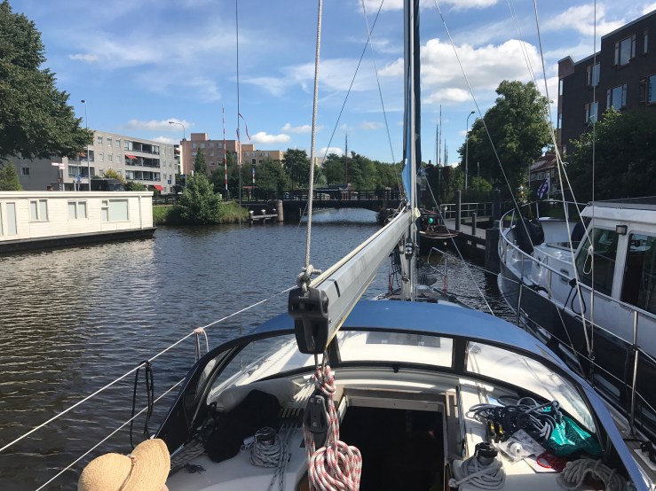 We leave the Marina through its convoluted exit, from the bridge people watch just waiting for you to come a cropper! It feels very gladiatorial where the crowds are already have their thumbs down! We are now back in the Reitdiep and through the first of our city bridges. It is 1115 and we have 45 minutes before all the bridge keepers stop for their lunch.