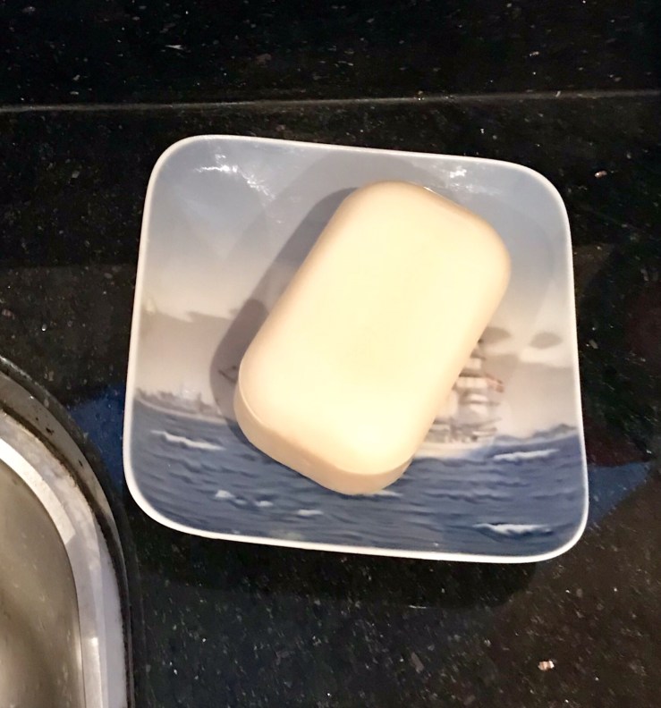 Yet despite my most florid and lavish descriptions, lowered prices – even less than I paid for them and weeks on eBay, nothing sold with the exception of the hideous miss matched glass candle sticks! Clearly I am not destined to be an antiques expert and I will just have to find a use for these things! The plant pot should have been easy to deal with but it is just too small for a hyacinth and too big for the croci, the shiny aluminium tea set now brightens a dark corner in the kitchen and the Royal Copenhagen dish has become the front line in my crusade against plastic packaging! A soap dish for real bars of soap!