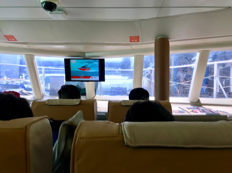 We arrived at the ferry terminal bright and early at 9.30am, not really realising just how many people wanted to go gambling! But as with everything in HK, if you are prepared to pay then the shorter the queue becomes! Standard class meant a 2 hour wait, Super Class equals one hour but Premier Grand Super Class was step this way to the next flight!