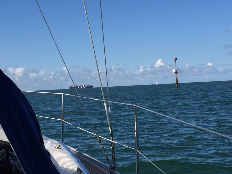 Sailing over the Bar at Chichester, not knowing when Grace will be returning!