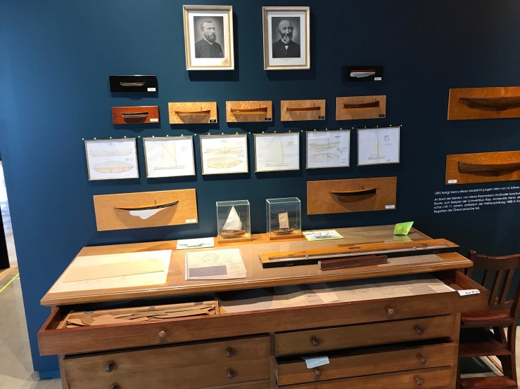 They were busy setting up the displays so we sneaked in for an exclusive preview! It felt rather good to sit at Georg Abeking’s desk amongst his plans and drawing implements – I always wanted to be a naval architect!