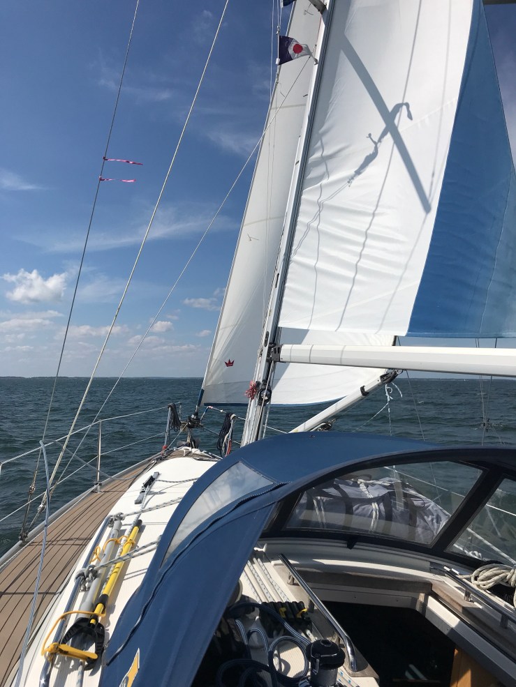 Disappointingly once in the Sund, the sea and wind remained relatively rough! The new guest harbour is rather exposed but as it was peak season they had people on the pontoons to take your lines and hold the bows. Absolutely essential in the big swell and strong cross winds and while I got to grips (or tried to) with our 9th new method for mooring – Lazy lines! Not so lazy in fact as they are big, heavy, weed slimed wet ropes that run from the pontoon out to a sinker. You are supposed to come in bows first, pick up the line at the bow and then run along it to the stern where you haul it in and cleat it, all in a 12 knot cross wind while you are still trying to secure the bow, which by now is wanting to wander and swing away! In addition you have the angriest one armed man I’ve ever met (not that I have met many on reflection!) on the boat next to you, pushing at your guard rails and yelling rather than offering to help. Not the smoothest of landings!