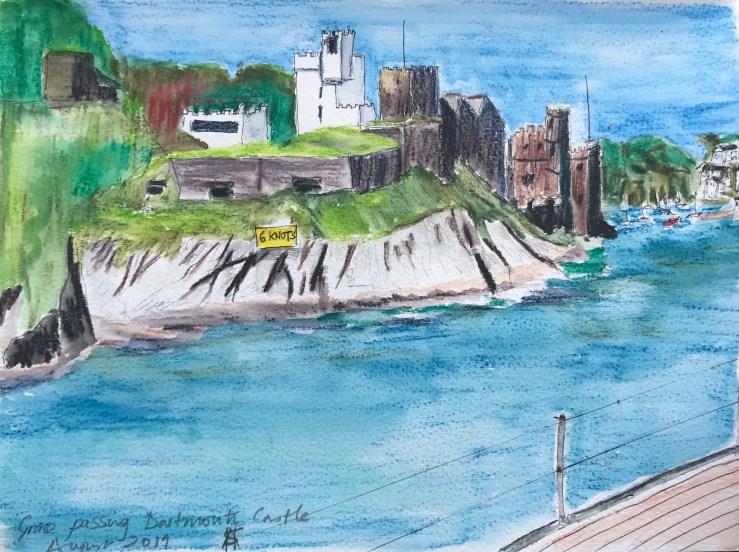 Next day was a fairly easy 30 nm beat directly across Lyme Bay towards Dartmouth. This would be our last outward bound day of the cruise before we had to turn around and sail back. We picked up the approach to the river Dart at the West Rock South Cardinal Buoy, keeping it and the Castle Ledge Buoy to starboard. Then passing up through The Range, keeping the Checkstone Buoy and Dartmouth Castle to port before mooring up at Dart Haven marina at Kingswear, seven day and approximately 180 nm sailed.
